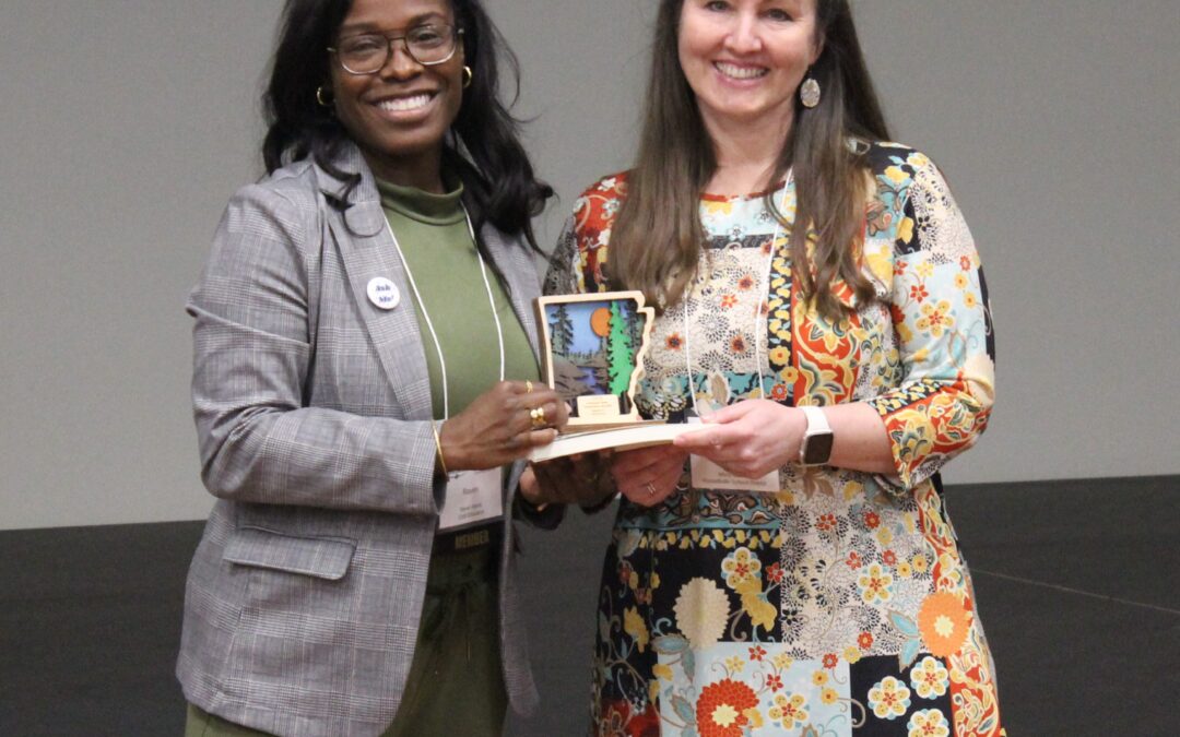 Above image: Raven Harris, AEEA Board President, presents Misty Barron with the Outstanding Formal Environmental Educator Award.
