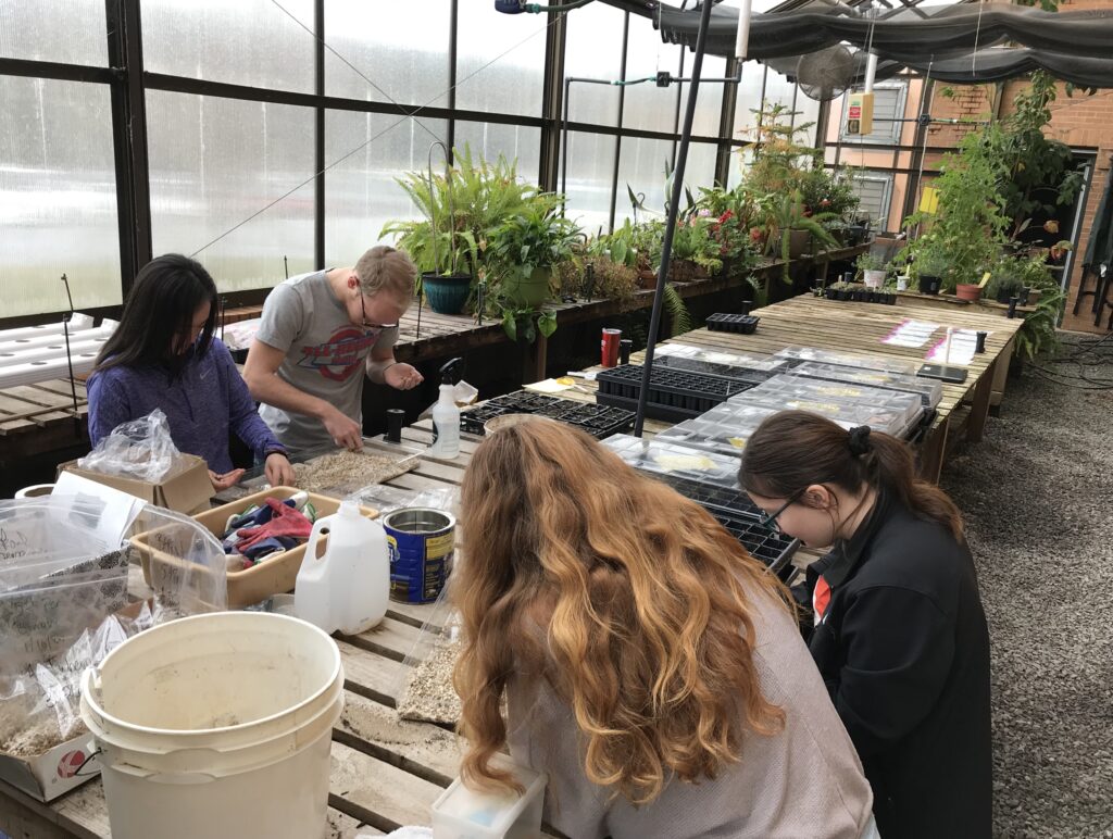 Above images: Misty bird banding for research and students planting milkweed seeds.